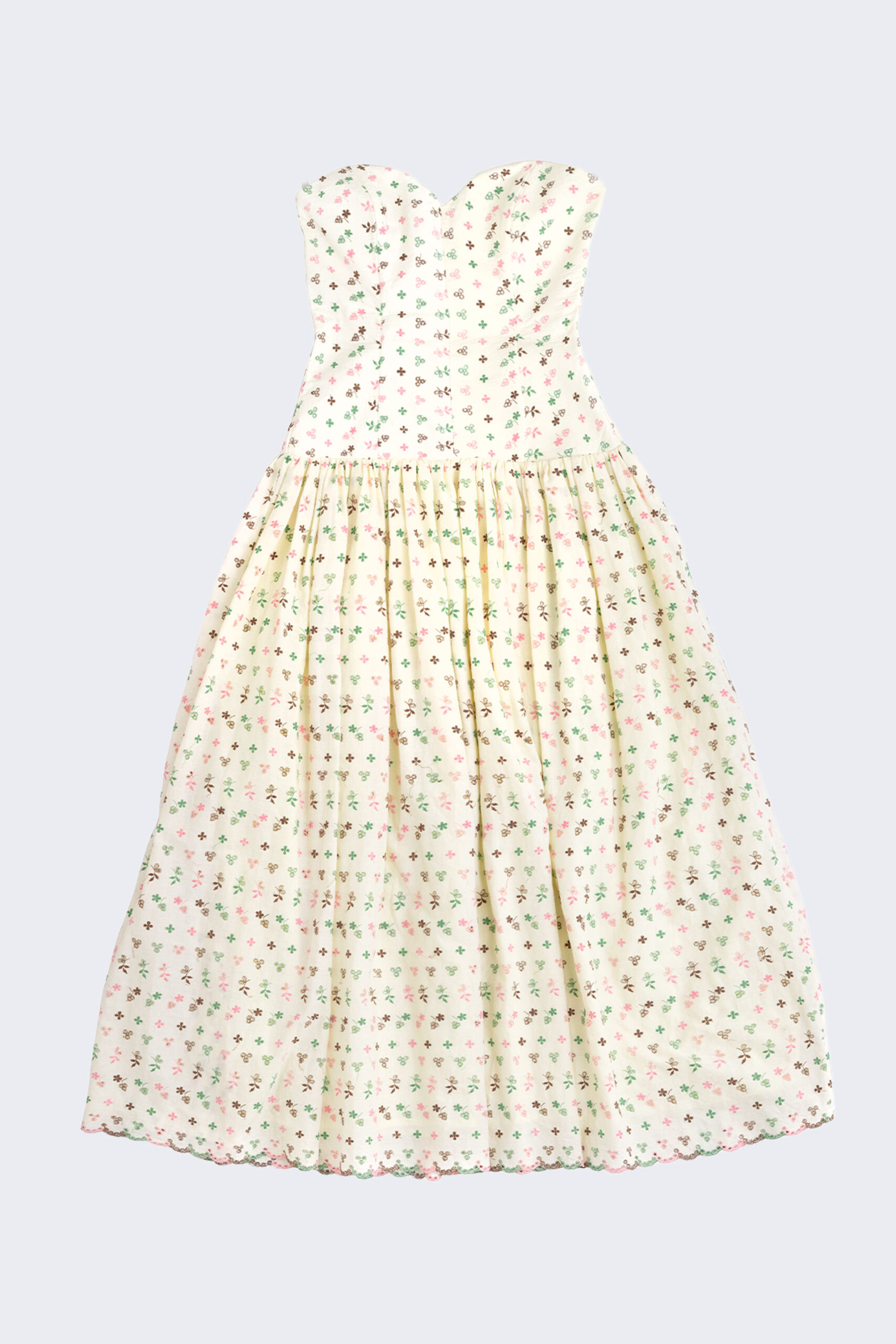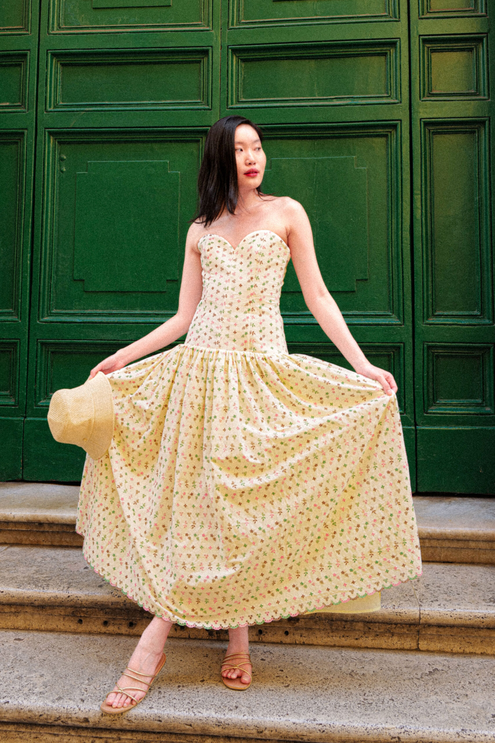 Abito bustino in Sangallo, realizzato con pregiati tessuti antichi, che unisce il fascino del passato a un’eleganza senza tempo. La gonna leggermente a ruota aggiunge leggerezza e movimento, creando un look raffinato e romantico. Perfetto per shooting fotografici e progetti artistici, dona un tocco di autenticità e charme a ogni scena.